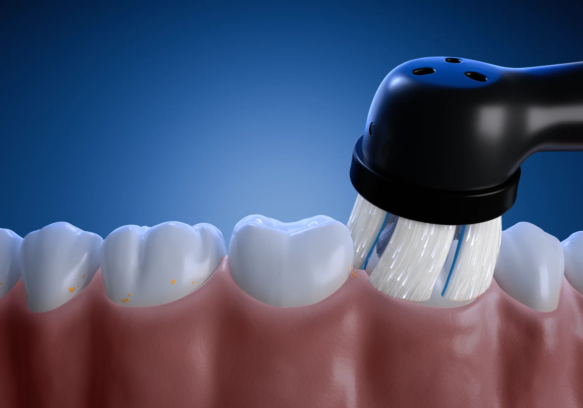 Dentist-inspired round head featuring more than 4,000 ultra thin and soft bristles cleaning along the gumline for 100% healthier gums in just 1 week*.*vs a regular manual toothbrush