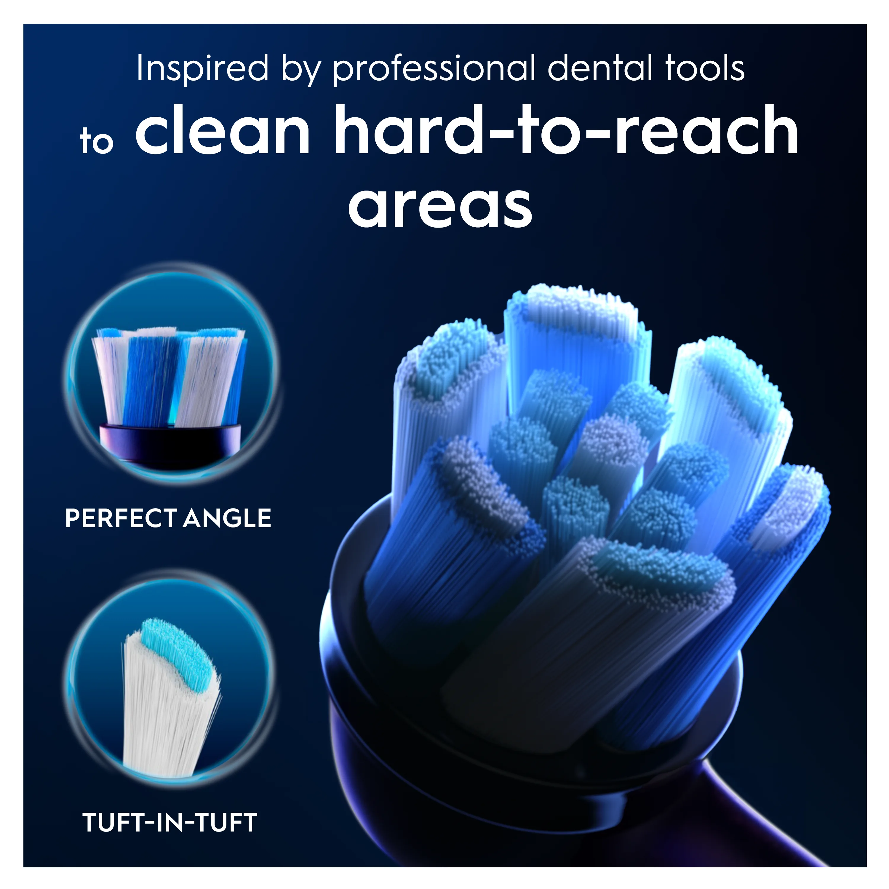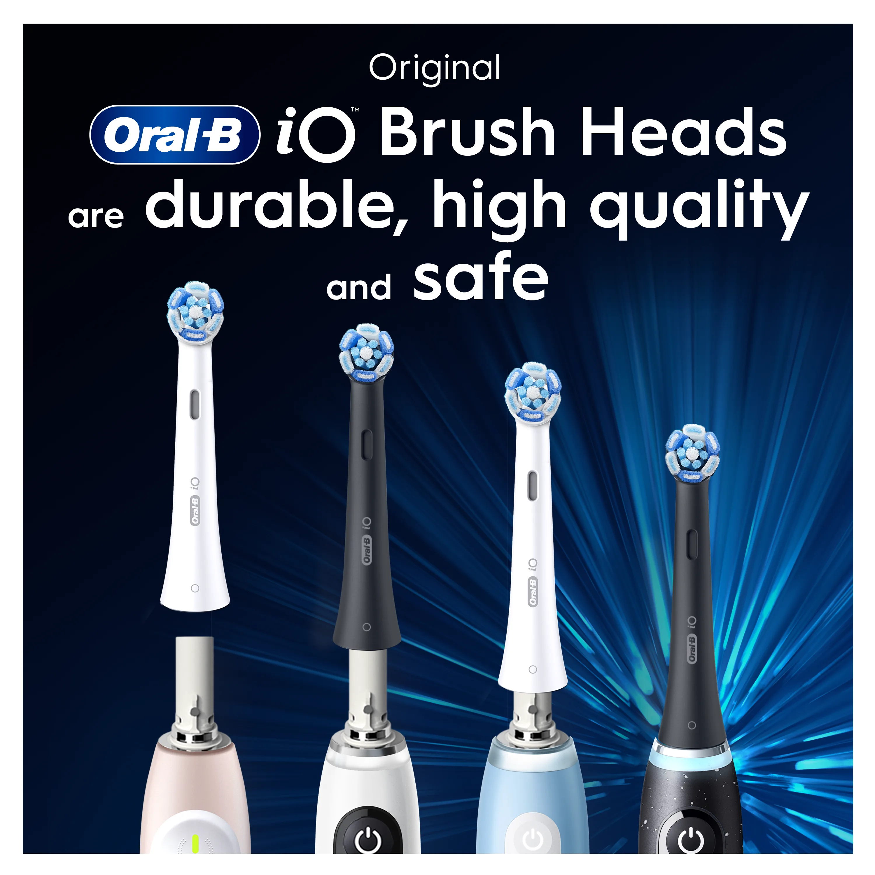 The Oral-B iO Series Ultimate Clean Replacement Brush Heads combine powerful but gentle micro-vibrations with our unique, dentist-inspired round brush head design for a professional clean feeling every day. Designed exclusively for Oral-B iO electric toothbrush handles, the Ultimate Clean brush heads help remove up to 100% more plaque than a regular, manual toothbrush, leaving teeth feeling clean and bright. Precisely angled at 16 degrees, tufted bristles help clean hard-to-reach areas of the mouth. Since dentists recommend changing your toothbrush head every 3 months for best results, Oral-B replacement brush heads feature color-changing bristles that signal when it's time for a change by fading to white. Enjoy superior cleaning power with the only refill brush heads designed exclusively for – and guaranteed to fit – your Oral-B iO electric toothbrush.