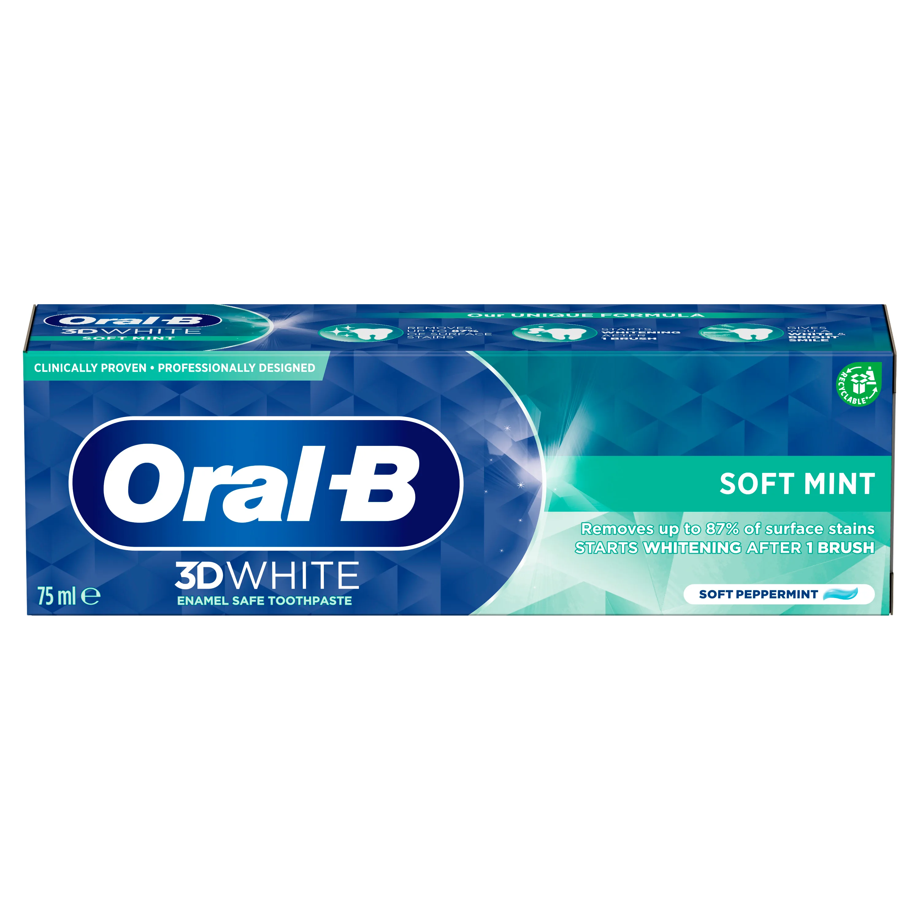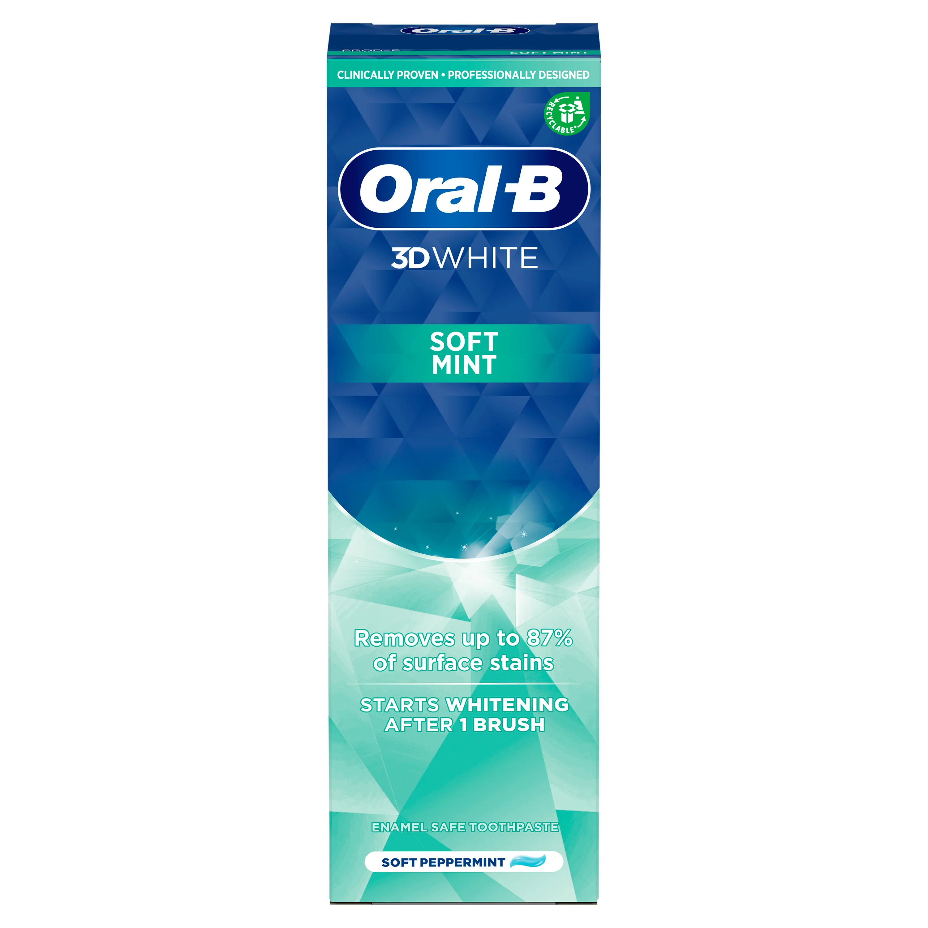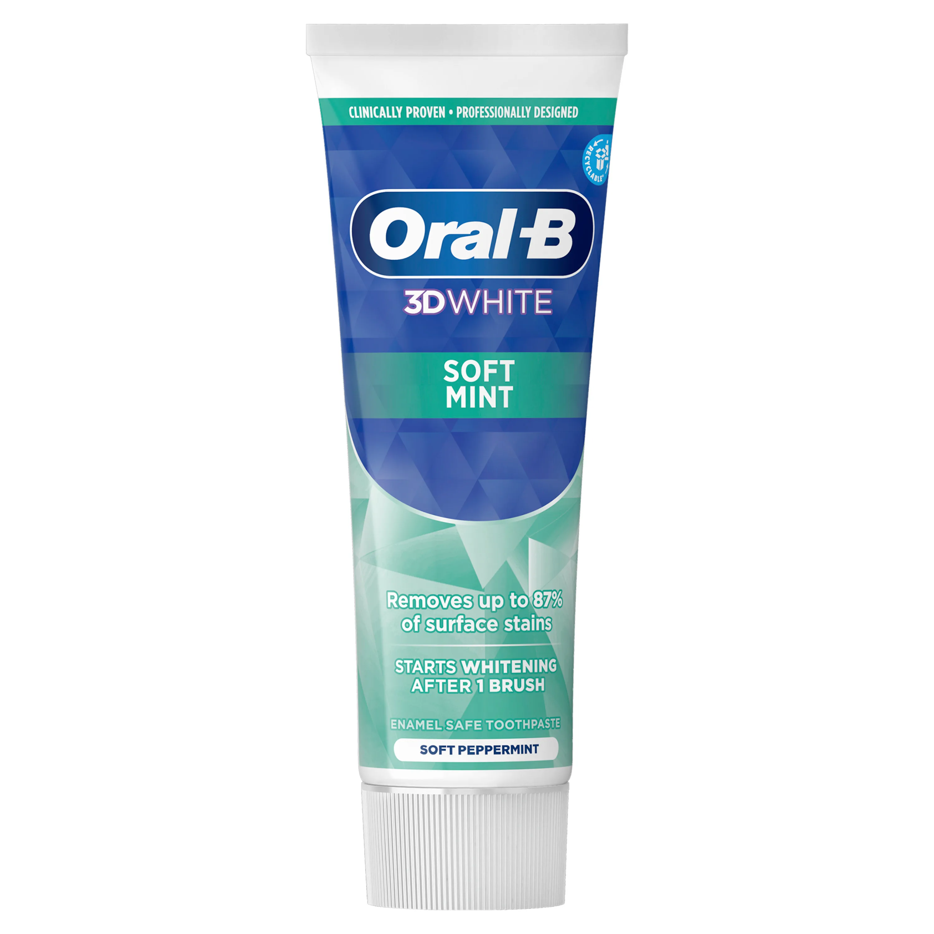 Oral-B 3D White Soft Mint toothpaste is clinically proven, removes up to 87% of surface stains and starts whitening after 1 brush.