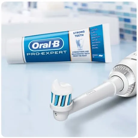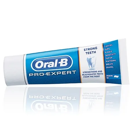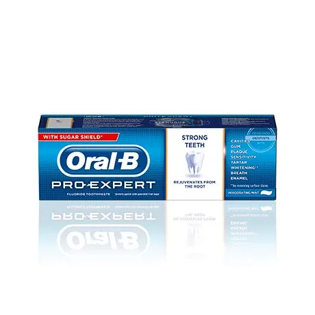 Oral-B Pro-Expert Strong Teeth toothpaste rejuvenates and strengthens your teeth from the exposed root to the tip. This is thanks to a high level of active ingredients that act on gums, at the gumline, and the tooth surface to fight the root causes of weakened teeth.